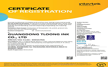 2024年 公司成為全國首家通過BRCGS PM認證的食品包裝接觸材料用水性油墨生產企業 2024-12-31