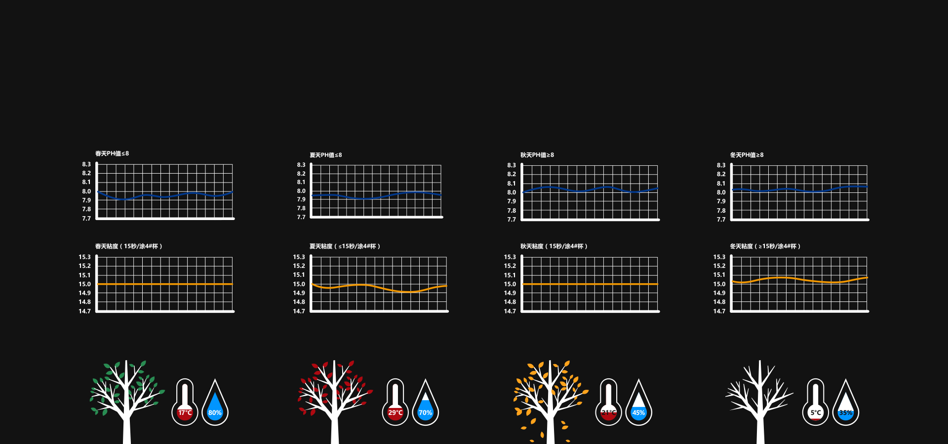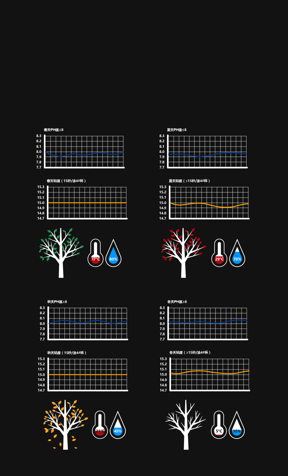 在不同季節和溫濕度情況下,PH值、粘度、顯色性依然保持穩定。